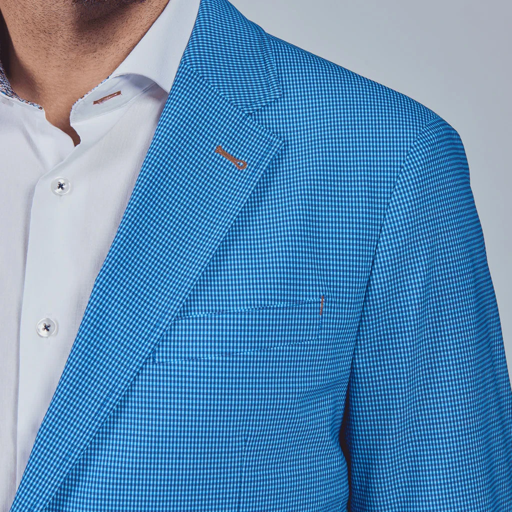 This blue and grey plaid sport jacket is suitable for wear all year round, which in turn, brings you perpetual elegance. Dressed up with a pair of chinos and a sport shirt, or dressed down with a pair of denim and a t-shirt, the Carl jacket offers you many different looks.