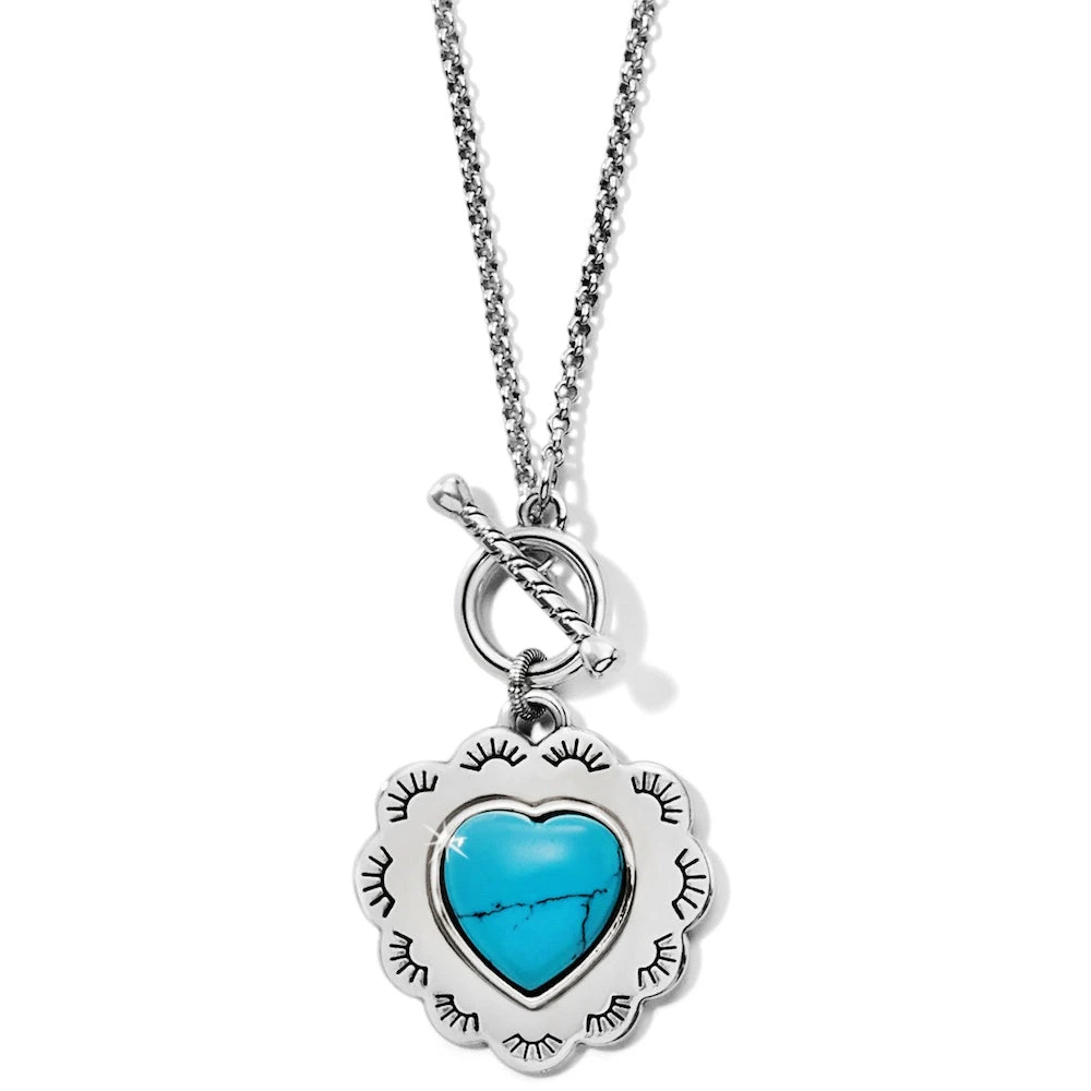 A new heart shaped necklace with a boho chic feel. Accented with a turquoise magnesite known for its powers of love.