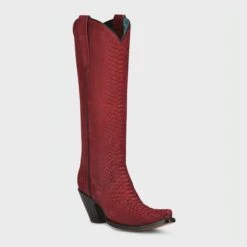 Corral LD Ruby Red Tall Top Matching Stitch Pattern & Inlay Pullstraps Snip Toe Boot Z5076