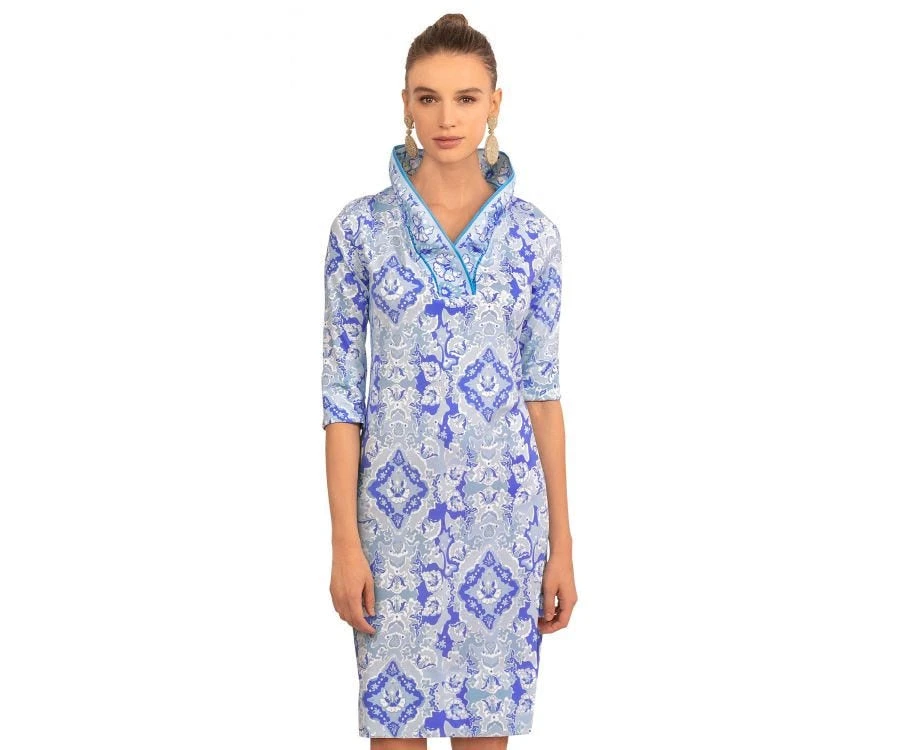 - Coordinating Fabric on Stand-Up Ruffle Neck / Optional Turn Back Cuffs