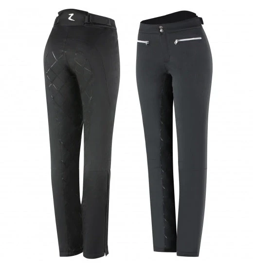 Get some added warmth with these stylish, comfortable padded women’s breeches with waterproof fabric. Technical silicone print at the seat provides extra grip in the saddle. A back high waist provides both a great fit and perfect shape. Front zipper pockets are perfect for storing keys or carrots.